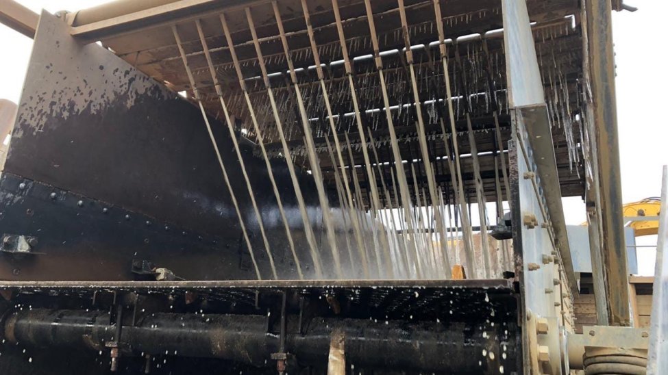 Еще одно преимущество — рабочая поверхность этого грохота: 2 на 6м. Такая площадь позволяет разместить систему принудительного размыва, которая будет дезинтегрировать любую породу.