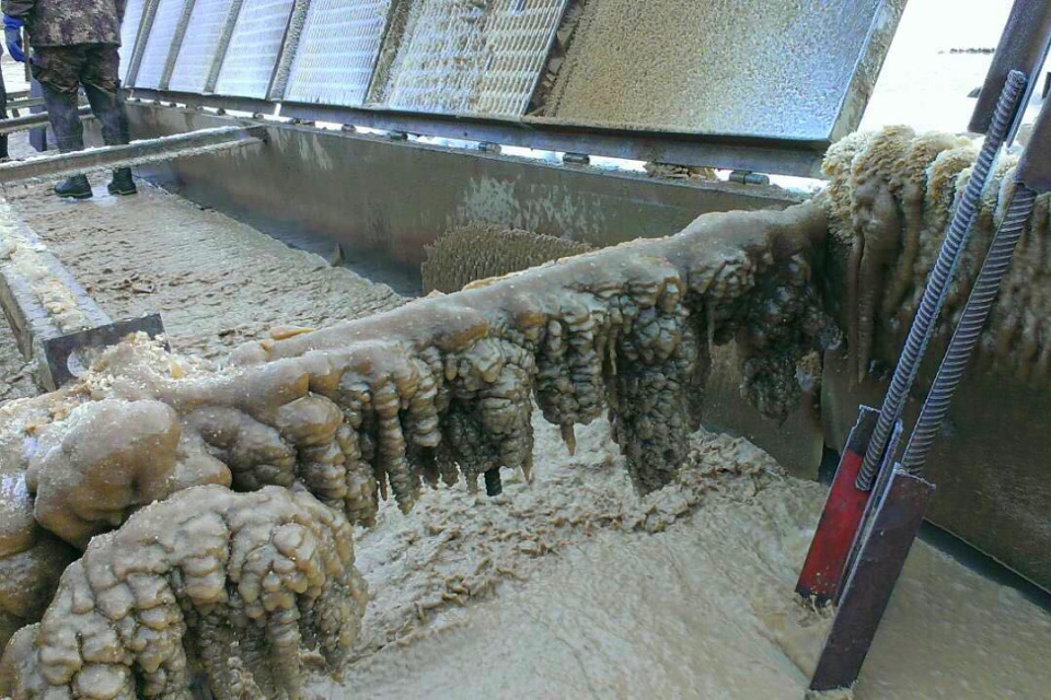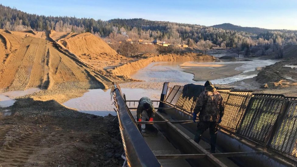 Промывочный сезон 2017 года на участке «Чибижек» (Красноярский край) компания АО «Голд Майн Технолоджи» завершила 12 ноября. К этому моменту температура воздуха опустилась до −200С и привела к замерзанию шлюза промприбора вместе с коврами, трафаретами и промываемым материалом.