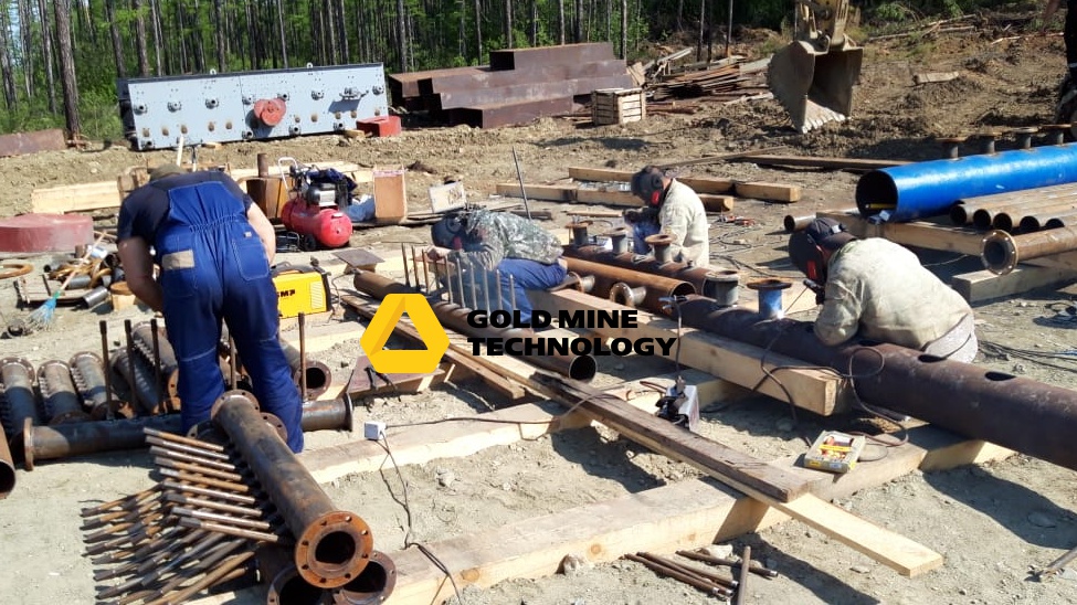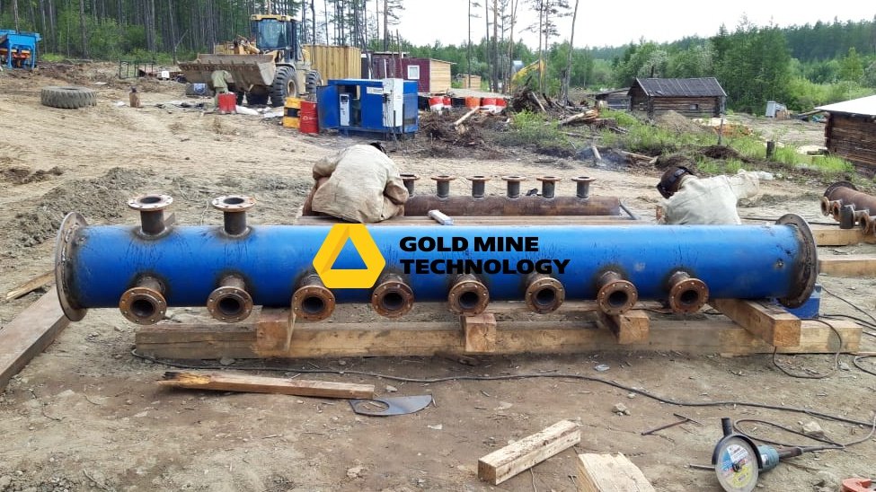 Завершаем обварку ресиверов размыва, моющих ставов грохота и кавитаторов, составляющих вместе систему принудительного размыва. Вся система собирается на месте из заранее заготовленных деталей, представляющих в основном трубопрокат, фланцевые соединения, форсунки, ремонтные соединения (ерши) и задвижки (краны).