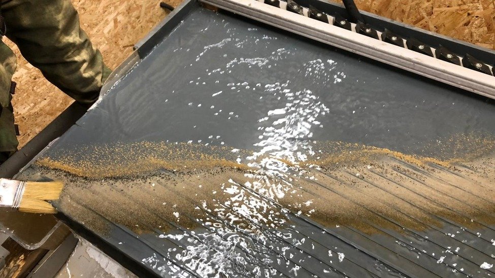 11 мая сделали первую съемку золотосодержащего концентрата с дражных ковров и отсадочных машин. Содержание золота в песке соответствует данным геологоразведки.